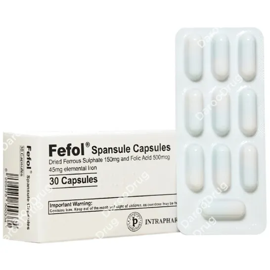 کپسول ففول Fefol مکملی قوی برای تأمین نیاز بدن به آهن و اسید فولیک است. آهن در بدن از نقشی اساسی برخوردار است. آهن یک ماده معدنی مهم است که در تمامی سلولهای بدن از جمله گلبولهای قرمز یافت میشود و برای اعمال حیاتی بدن از جمله اکسیژن رسانی به عضلات بسیار مهم است. در صورت کمبود آهن بخش اصلی هموگلوبین خون است و اکسیژن را به سراسر بدن منتقل میکند. در نتیجه نبود آهن به مقدار کافی در خون بیماری کمخونی به وجود میآید. شایعترین نوع کمخونی در جهان کمخونی ناشی از کمبود آهن است. کم خونی در بانوان به دلیل عادت ماهیانه بسیار شایعتر است و با اصلاح رژیم غذایی و مصرف مکملهای موجود برطرف میگردد.